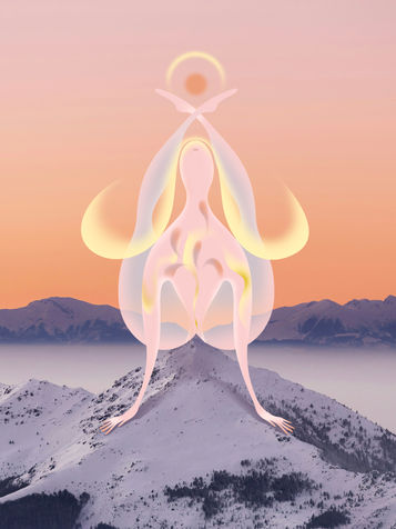 A serene yoga-inspired artwork collection blending yoga illustration with natural landscapes. It embodies the harmony of body, mind, and energy, expressing yoga’s meditative essence.